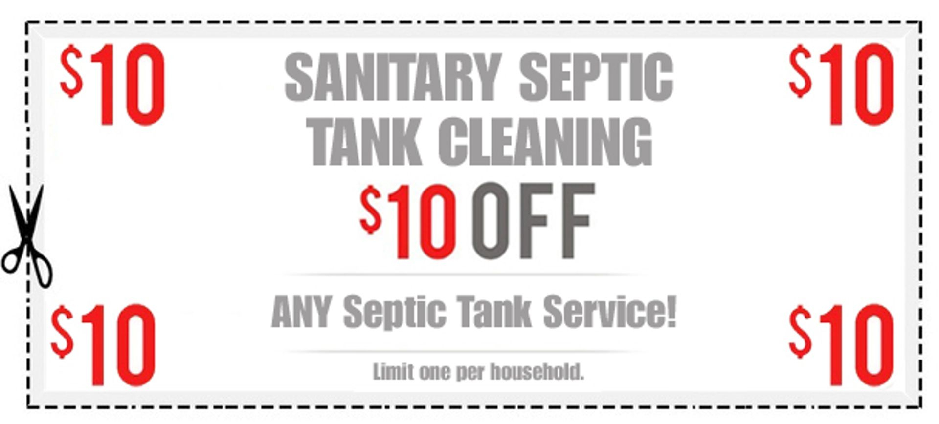 At Sanitary Septic Tank Cleaning Inc. in Columbia Station, OH, we believe in providing our customers with value and savings. Print out the coupon below and you’ll get $10 off any septic tank service.